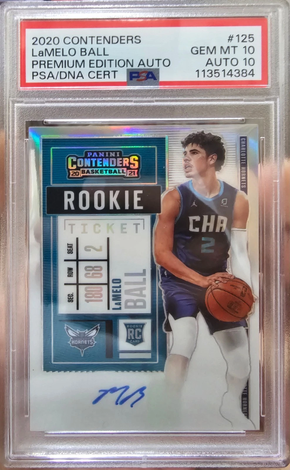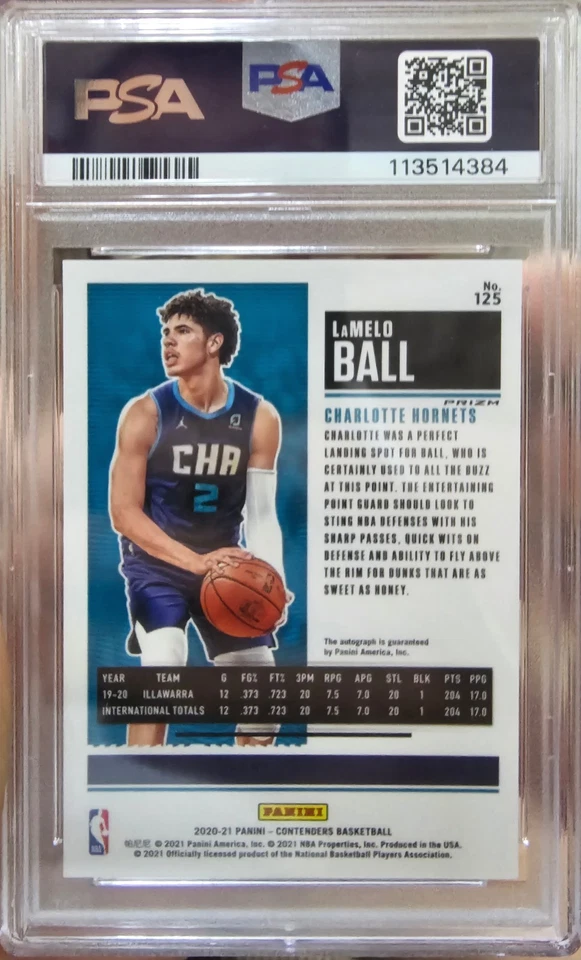 Whether you’re building a high-end rookie card collection, investing in long-term NBA talent, or seeking a true centerpiece card, the 2020 Contenders LaMelo Ball Rookie Ticket #125 Premium Edition Auto  PSA 20 is a standout acquisition.
