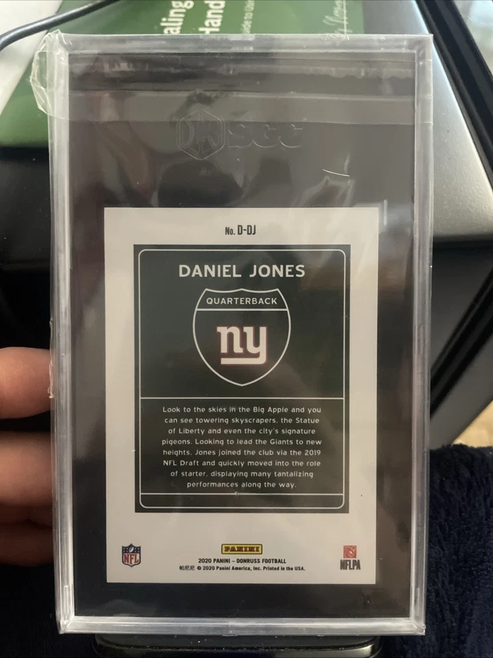 2020 Panini Donruss Daniel Jones Downtown PSA 10! New listing is for an ultra-rare Downtown! Daniel Jones insert from 2020 Panini Donruss Football, graded SGC 10 (Gem Mint). One of the most visually stunning and coveted inserts in the hobby, this case hit showcases Daniel Jones with a vibrant, Downtown Daniel Jones New York–themed illustrated background.