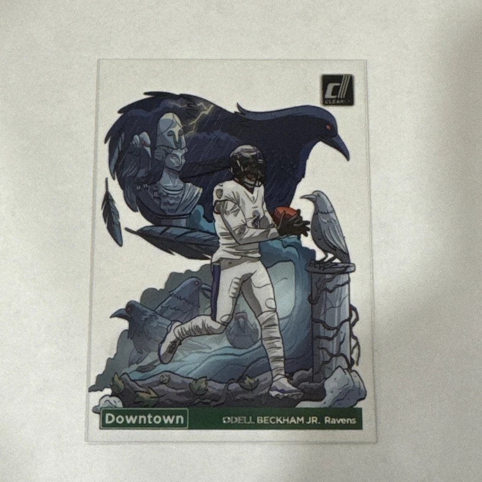 The Clearly Downtown insert merges the bold, city-themed artwork of Panini’s iconic Downtown series with the sleek, transparent acetate card stock exclusive to Clearly Donruss. This edition showcases Odell Beckham Jr., one of the NFL’s most explosive and dynamic wide receivers, in a rare and eye-catching collectible that’s as unique as his play style.
