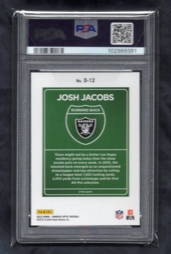 2023 Panini Donruss Optic Downtown #D12 Josh Jacobs – PSA 10 Gem Mint | SSP Case Hit Insert