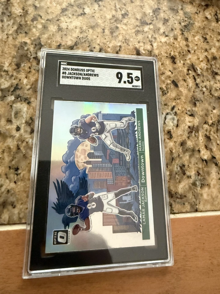 With Lamar Jackson continuing to perform at an MVP level and Mark Andrews remaining one of the NFL’s top tight ends, this dual card represents both current excellence and long-term hobby value. Downtown Duos inserts are rarer than standard Downtowns, and when graded in top condition, they often become centerpiece items in elite football collections.