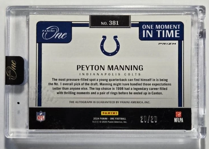 2024 Panini One #381 Peyton Manning One Moment in Time Gold Auto /20 – Hall of Fame Ink, Gold-Level Rarity