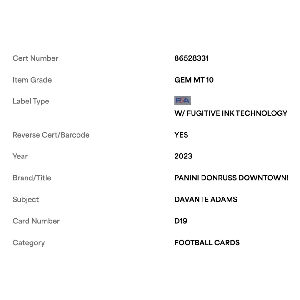 Add a true gem to your collection with this 2023 Downtown Davante Adams PSA 10. Rare, graded, and ready to impress this one won’t last long.